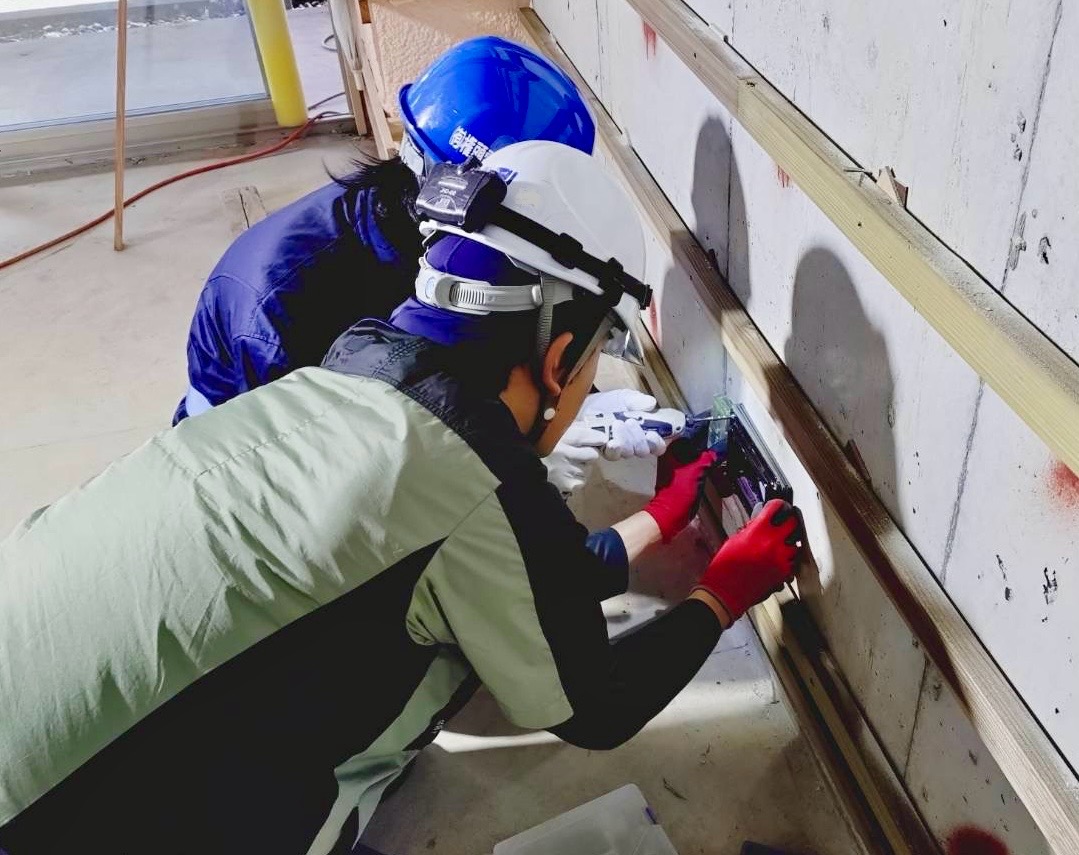 材料見学・加工、図面の見方・説明、施工中の現場見学や業務の手伝いなど体験してもらいました。